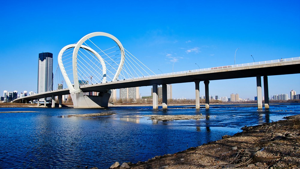 沈阳三好桥是一座世界首创的钢拱塔斜拉桥,荣获全球桥梁设计最高奖项“尤金·菲戈奖”和2009年度全球道路成就奖。该桥总设计师美国国家工程院院士、中国工程院外籍院士邓文中博士,是位设计过100余座桥梁的世界著名的桥梁专家。桥上的钢拱塔重量达1800吨,形为百合花瓣,又被称为在浑河上展翼的“蝴蝶翅膀”。