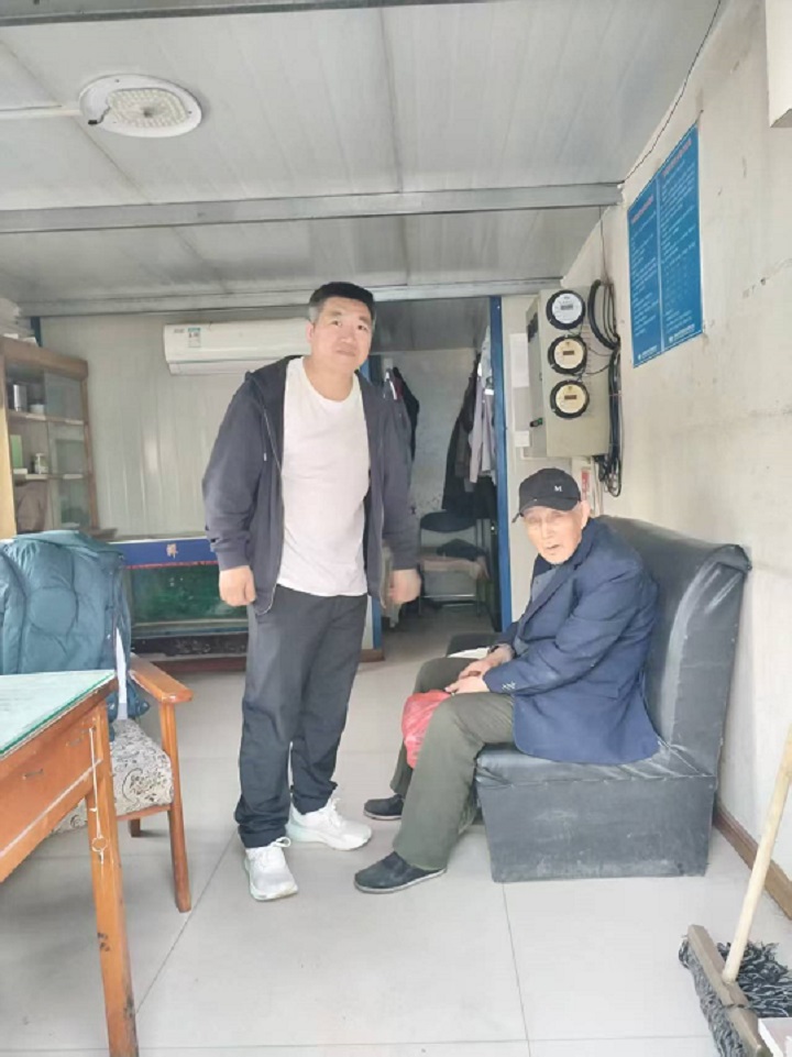 为帮助老人尽快与家人团聚,宋明远仔细观察,发现老人手机壳上留有手机号,随即通过该号码成功联系上了走失老人的家属。在等待家属到来期间,考虑到老人身体状况,宋明远搀扶着老人来到门卫室休息。