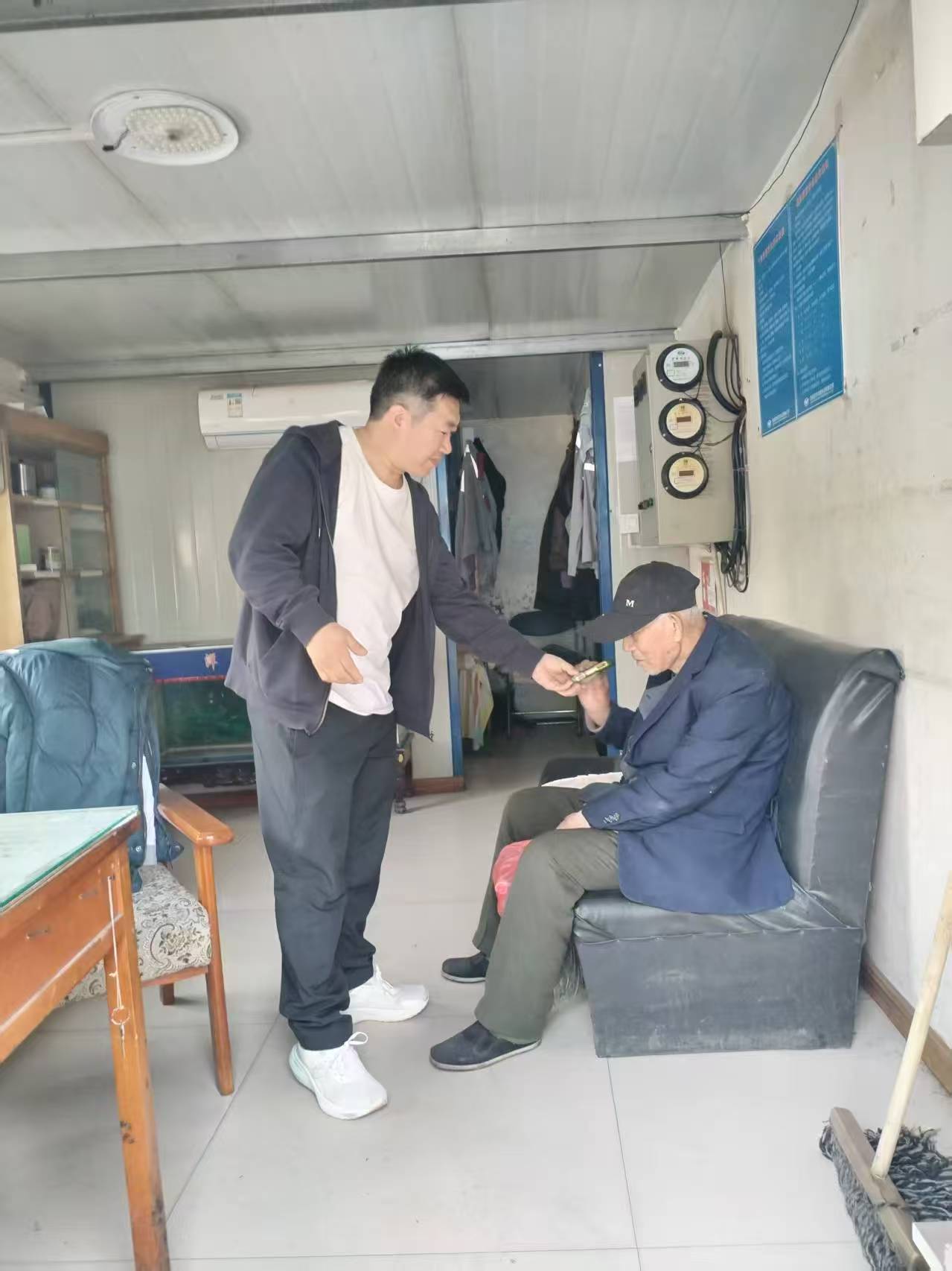 为帮助老人尽快与家人团聚,宋明远仔细观察,发现老人手机壳上留有手机号,随即通过该号码成功联系上了走失老人的家属。在等待家属到来期间,考虑到老人身体状况,宋明远搀扶着老人来到门卫室休息。