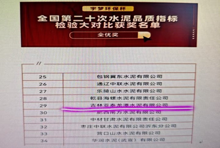 近日,亚泰建材龙潭公司传来喜讯,在全国水泥品质指标检验大对比中斩获“全优奖”,同时在吉林省水泥检验大对比中荣获“全合格奖”,双奖加身不仅彰显了企业过硬的产品质量,更印证了其在质量管控、生产保障与市场服务全链条的综合实力。