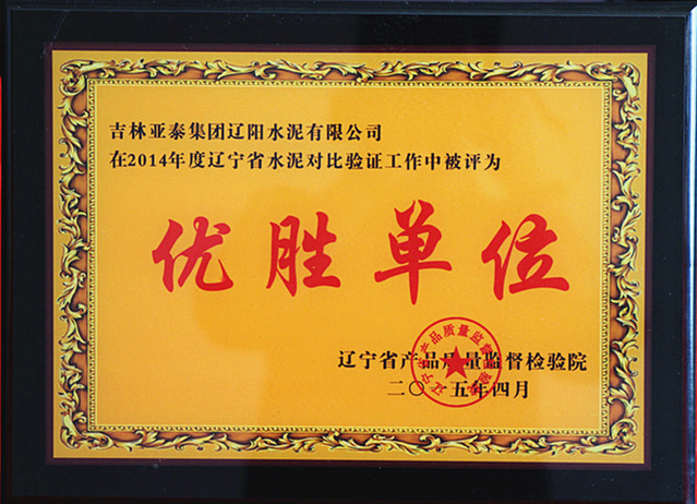 企业荣誉2014年度辽宁省水泥对比验证工作中被评为优胜单位