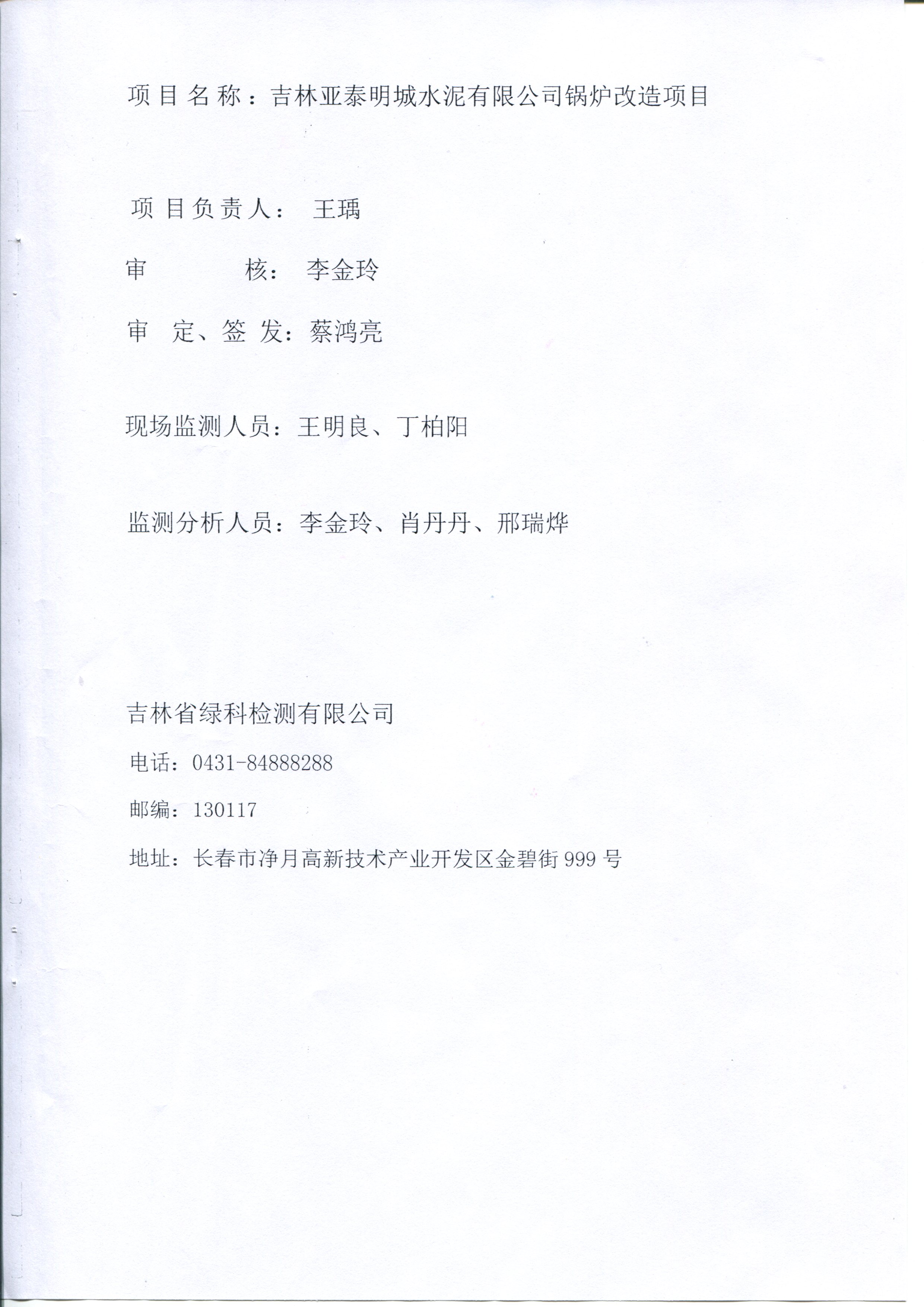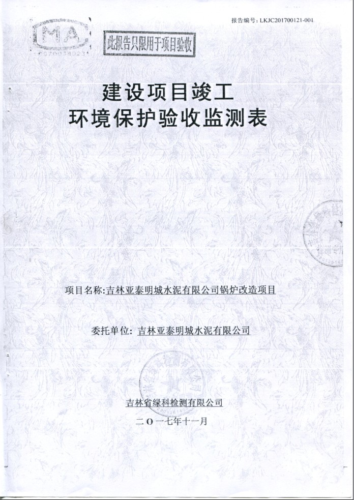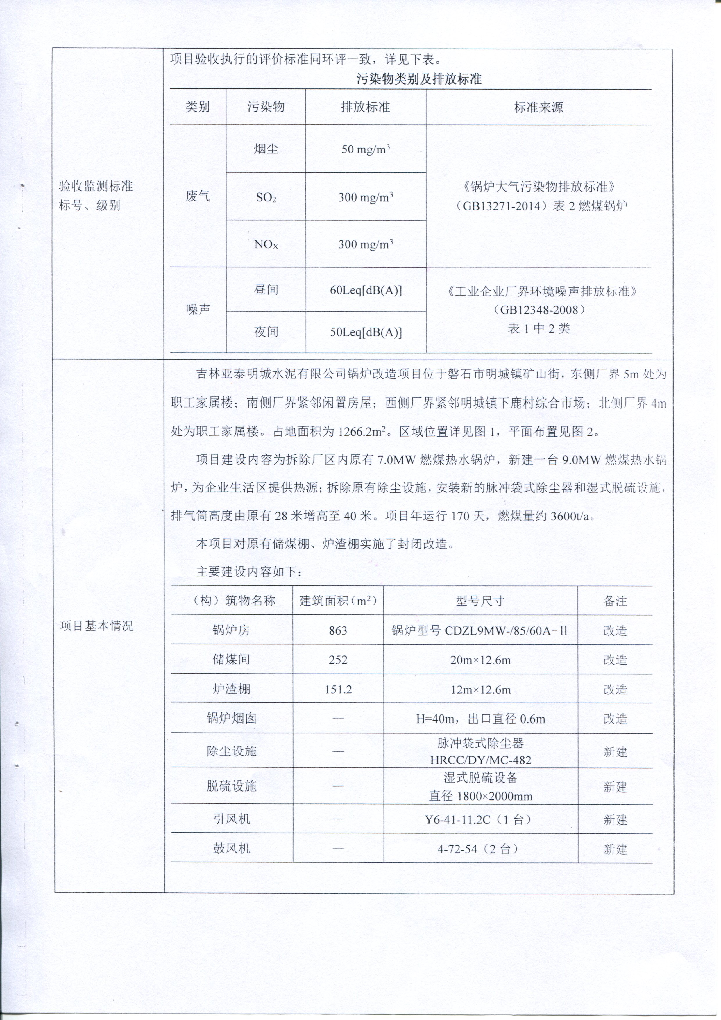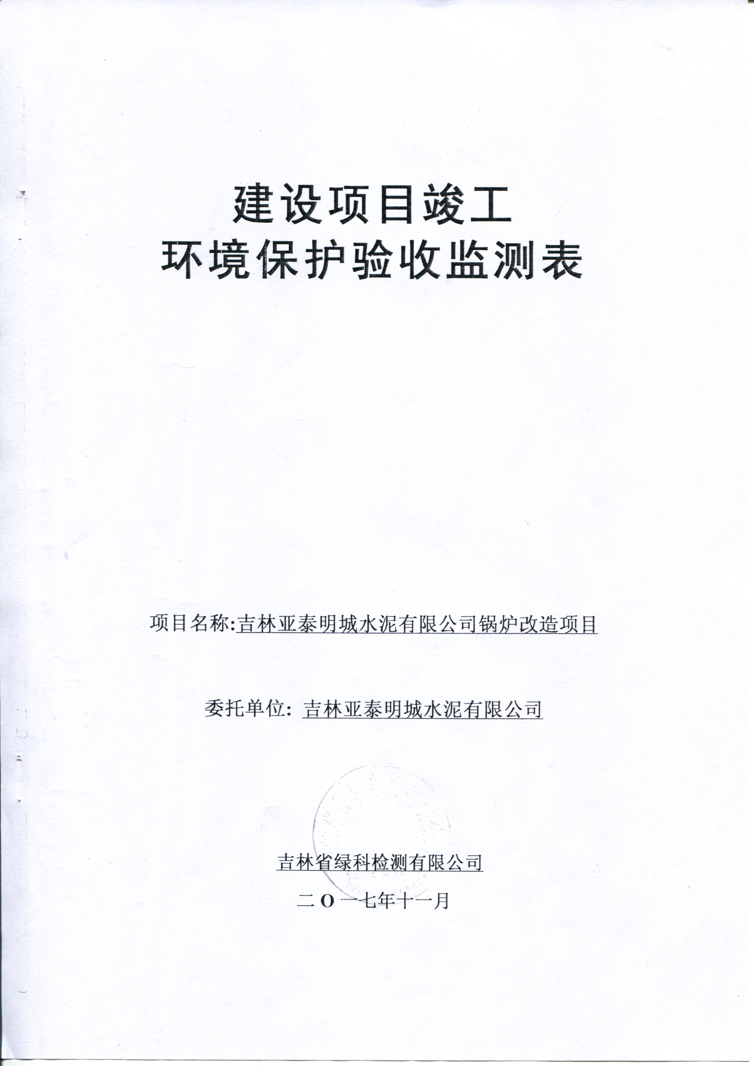 吉林亚泰明城水泥有限公司锅炉改造项目竣工环保验收监测表