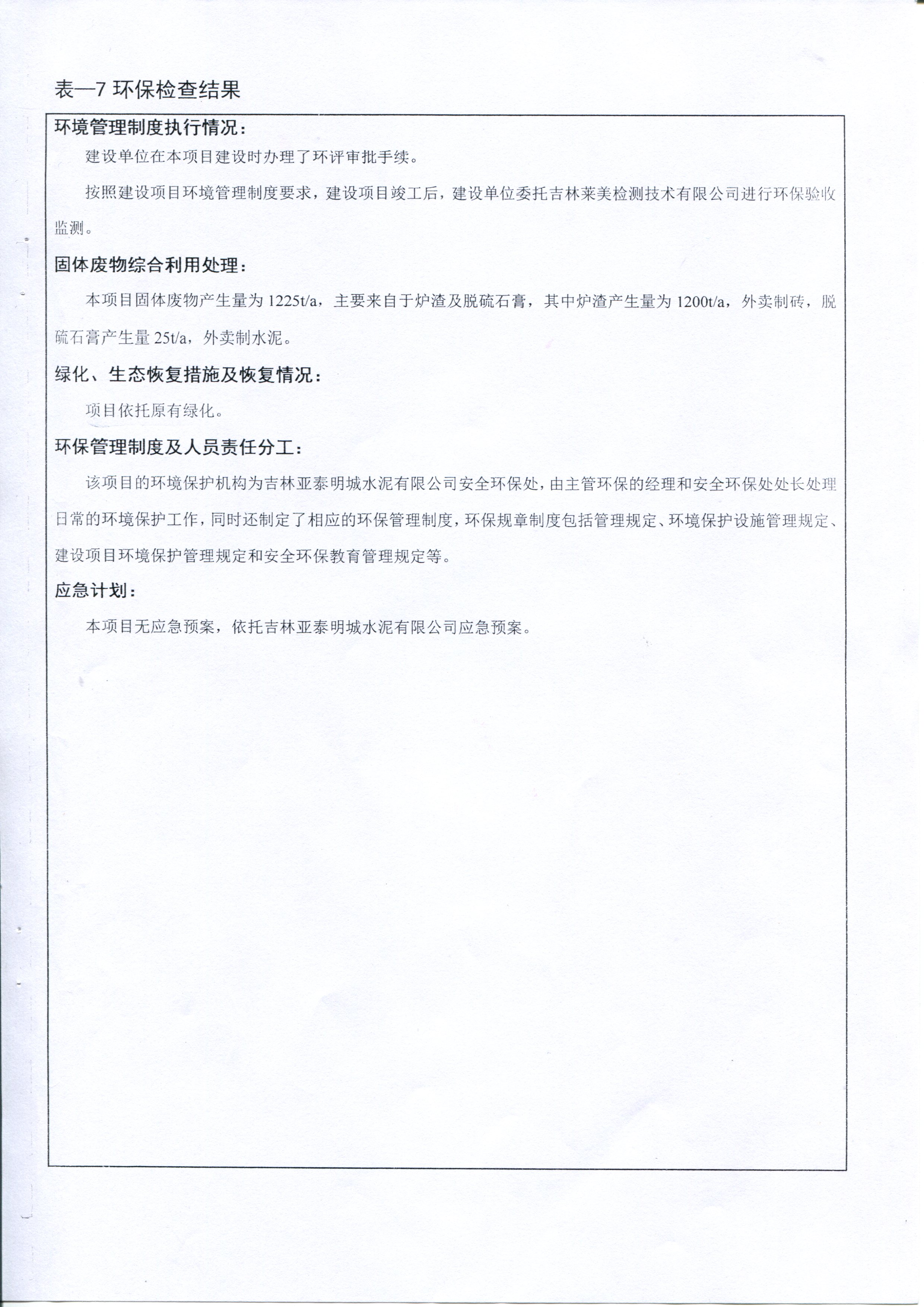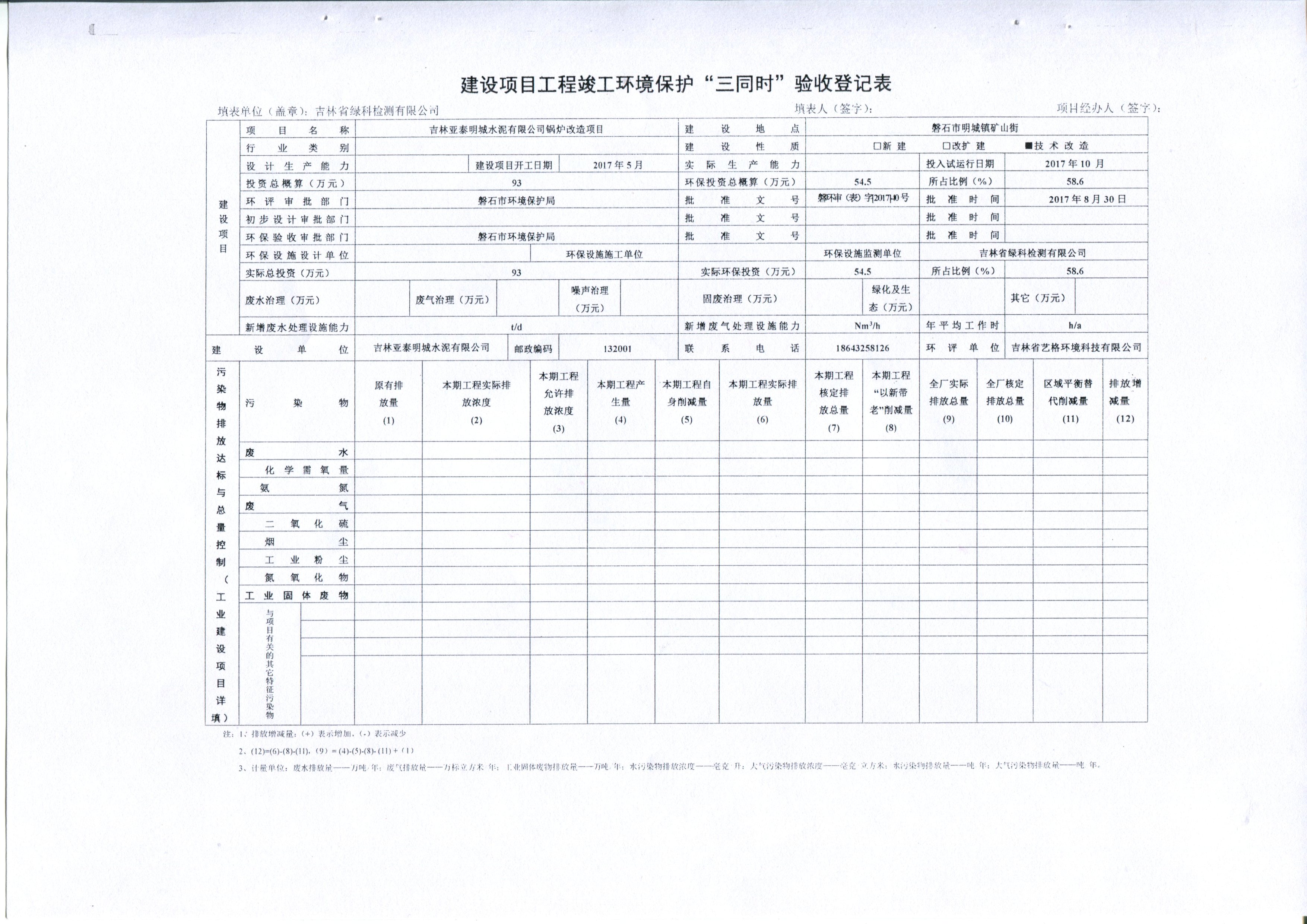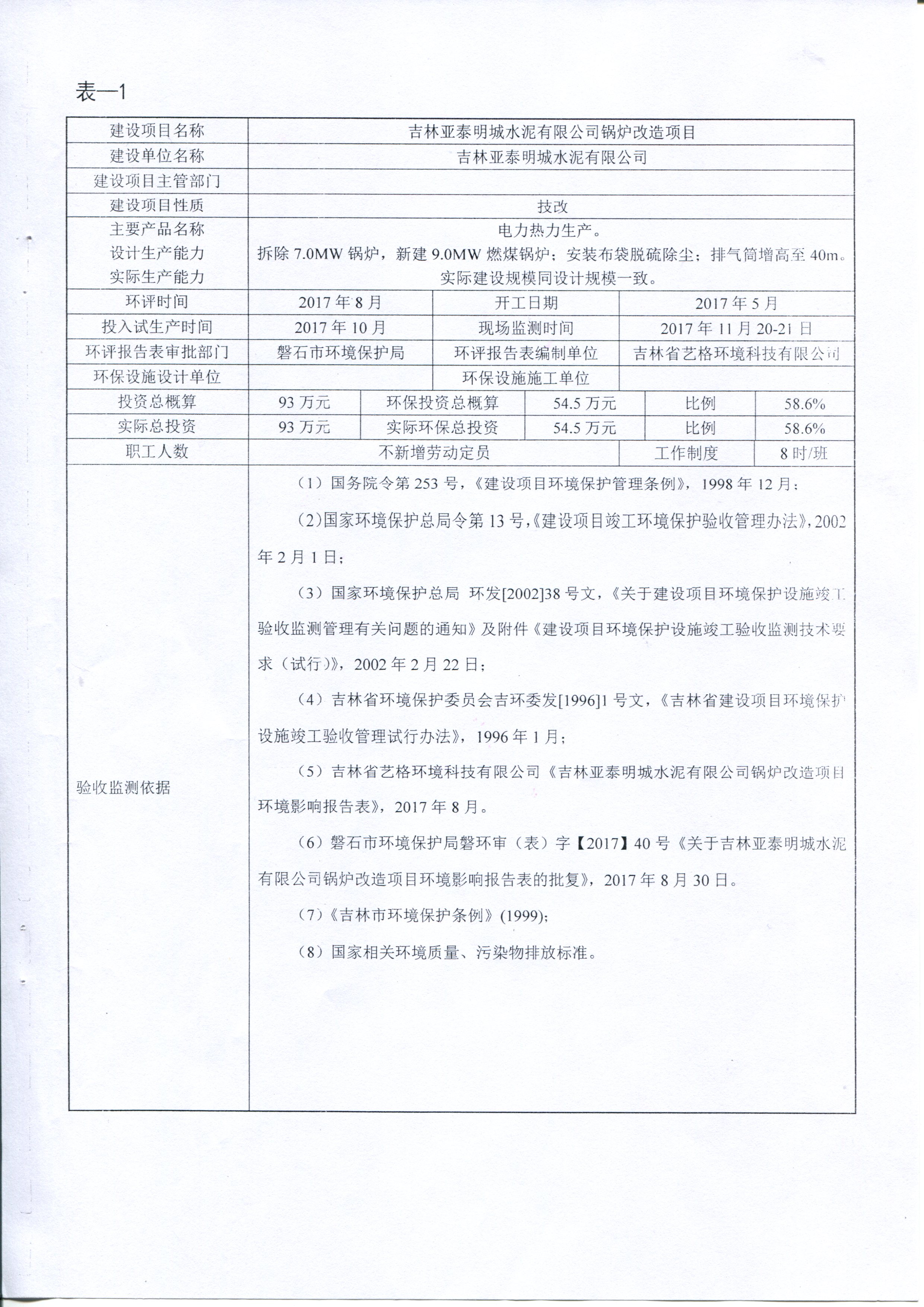 吉林亚泰明城水泥有限公司锅炉改造项目竣工环保验收监测表