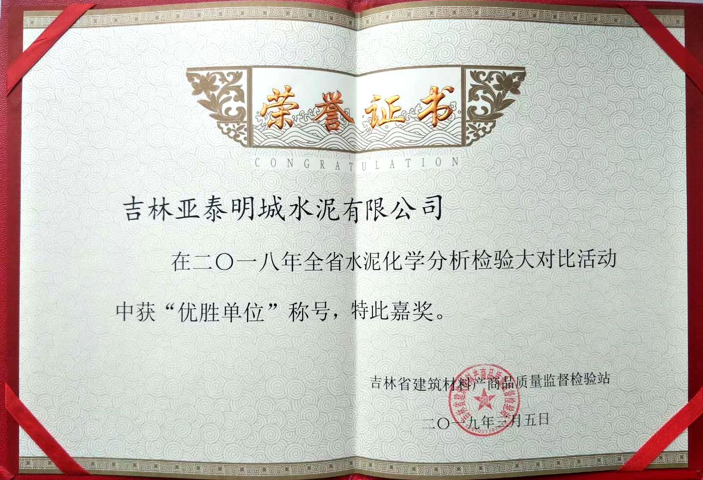 2018年全省水泥化学分析检验大对比活动“优胜单位”