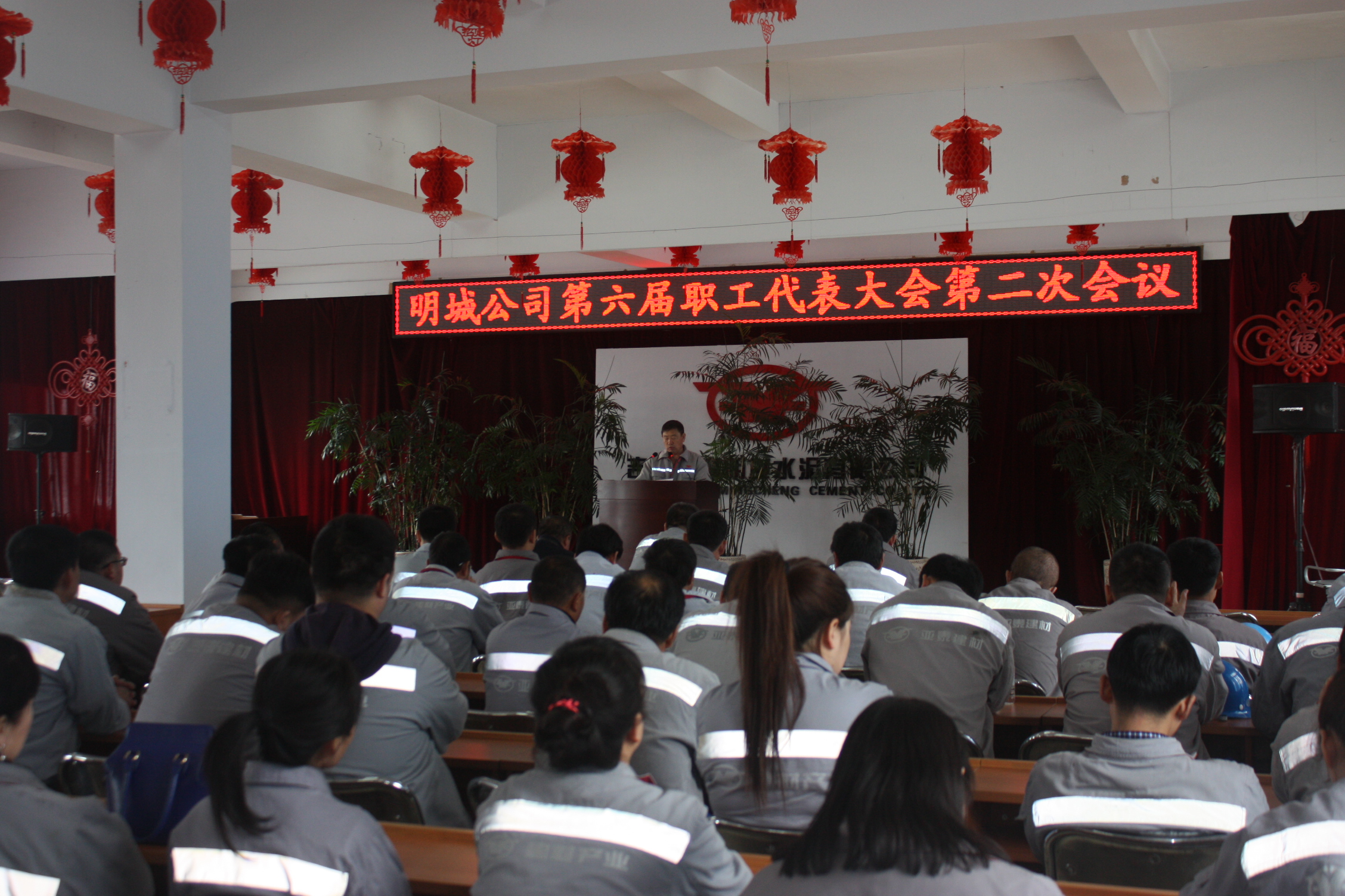 4月26日下午,吉林亚泰明城水泥有限公司第六届职工代表大会第二次会议在公司车队二楼会议室召开。公司党委书记、各部门领导、职工代表等40余人参加会议。
