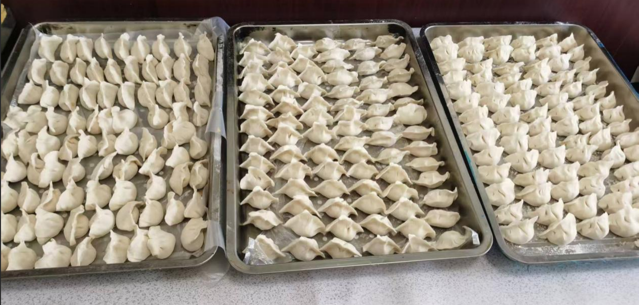经过数小时忙碌,一锅锅热气腾腾的饺子新鲜出锅,午餐时间食堂员工第一时间将饺子送到生产一线,让坚守岗位的员工及时品尝到暖心美食。