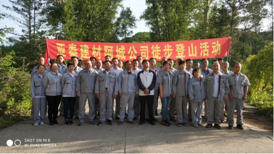 为弘扬“积极向上、快乐和谐”的亚泰文化,营造“快乐工作、健康生活”的氛围,提升公司团队凝聚力,调动公司广大团员工的工作热情和生产积极性,丰富员工业余文化生活,2019年6月4日早,亚泰建材阿城公司开展了以“奋斗的青春最美丽”为主题的徒步登山活动。本次活动行程近5公里,共有40余名员工参加。