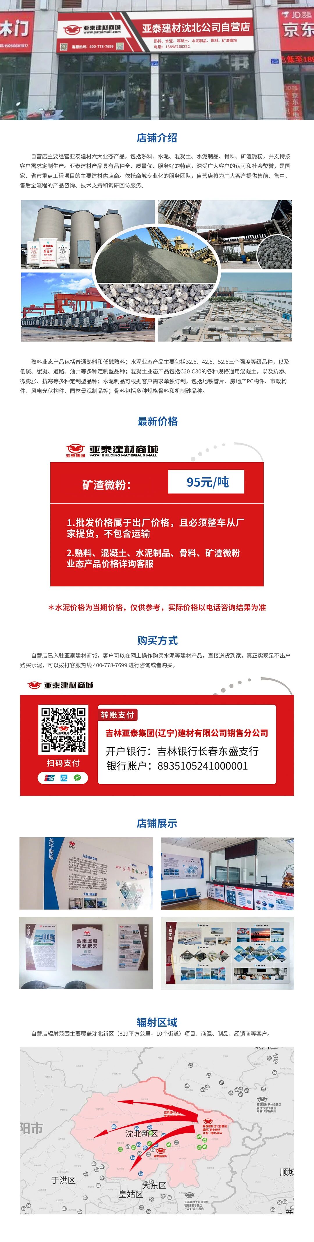 自营店以“熟料、水泥、混凝土、水泥制品、骨料、矿渣微粉” 构建全链生态,如同为沈北定制的 “基建补给包” :