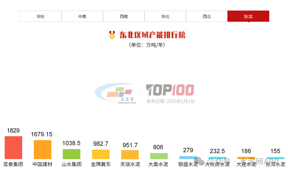 1月1日,中国水泥网发布“2024中国水泥熟料产能百强榜”,其中包含全国六大区域熟料产能排行榜。榜单显示,中国建材在华东、中南、西南、西北区域熟料产能均为第一!