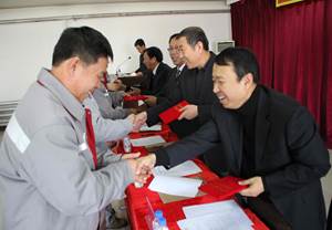 最后,公司副总工程师刘玉民主持了2013年度评比表彰。对在过去一年工作中表现突出的先进集体、模范员工、优秀员工、优秀大学生员工等进行表彰奖励,并号召公司上下要向认真学习先模实际,大力弘扬先模精神,在公司范围内广泛营造学先进、赶先进、争先进的浓厚氛围,形成热潮,为加快公司发展、确保实现年度目标提供强有力的动力保证。