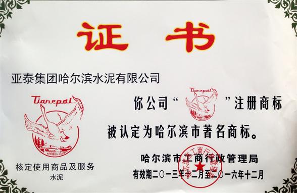 经过历时半年的申报、复审,亚泰建材哈尔滨公司“天鹅牌”注册商标被哈尔滨市工商行政管理局再次认定为哈尔滨市著名商标,有效期从2013年12月至2016年12月。这一荣誉的取得进一步巩固和强化了“天鹅牌”产品的社会知名度和市场影响力,为扩大市场占有率创造了积极条件。
