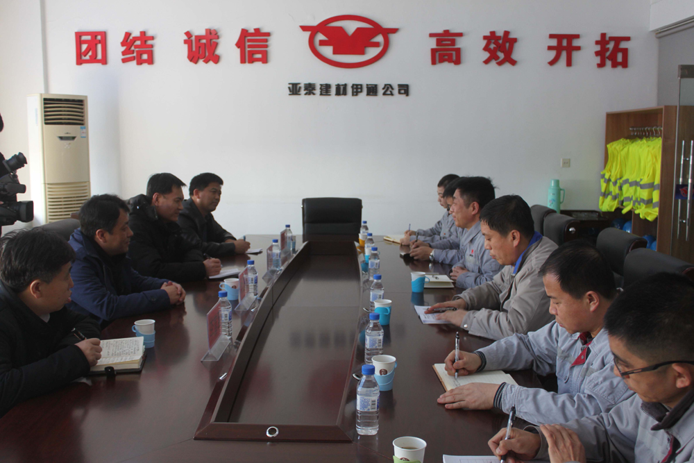 2016年2月5日,伊通满族自治县县委书记杨洪波在县委常委、办公室主任张霜冰、县委办公室副主任王世清、经济局局长李富军陪同下,到亚泰建材伊通公司进行新春走访,杨书记一行四人与伊通公司经营班子及相关部门人员进行了座谈。