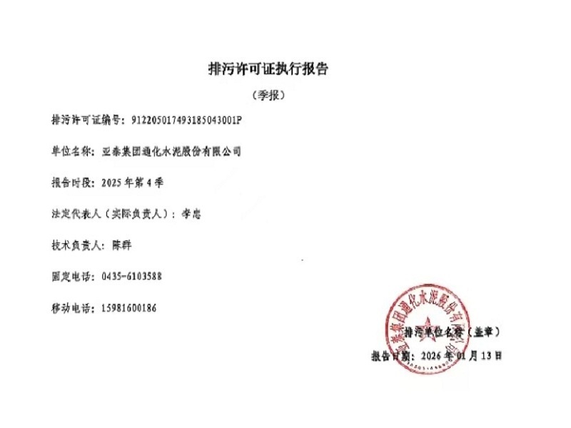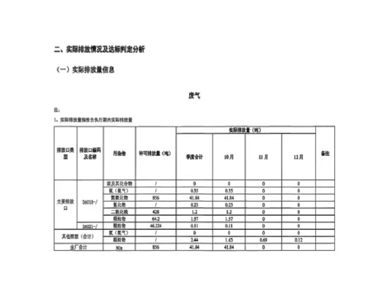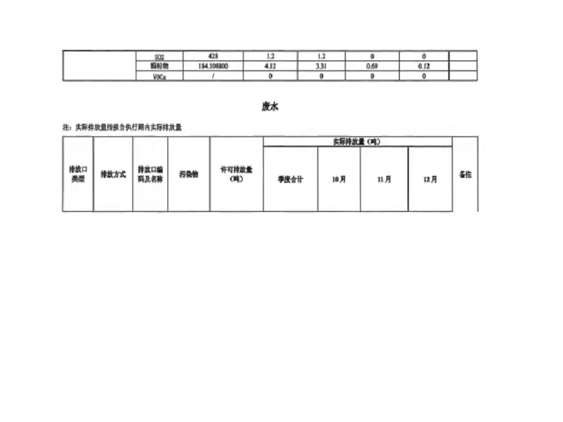 四季度排污许可证执行报告