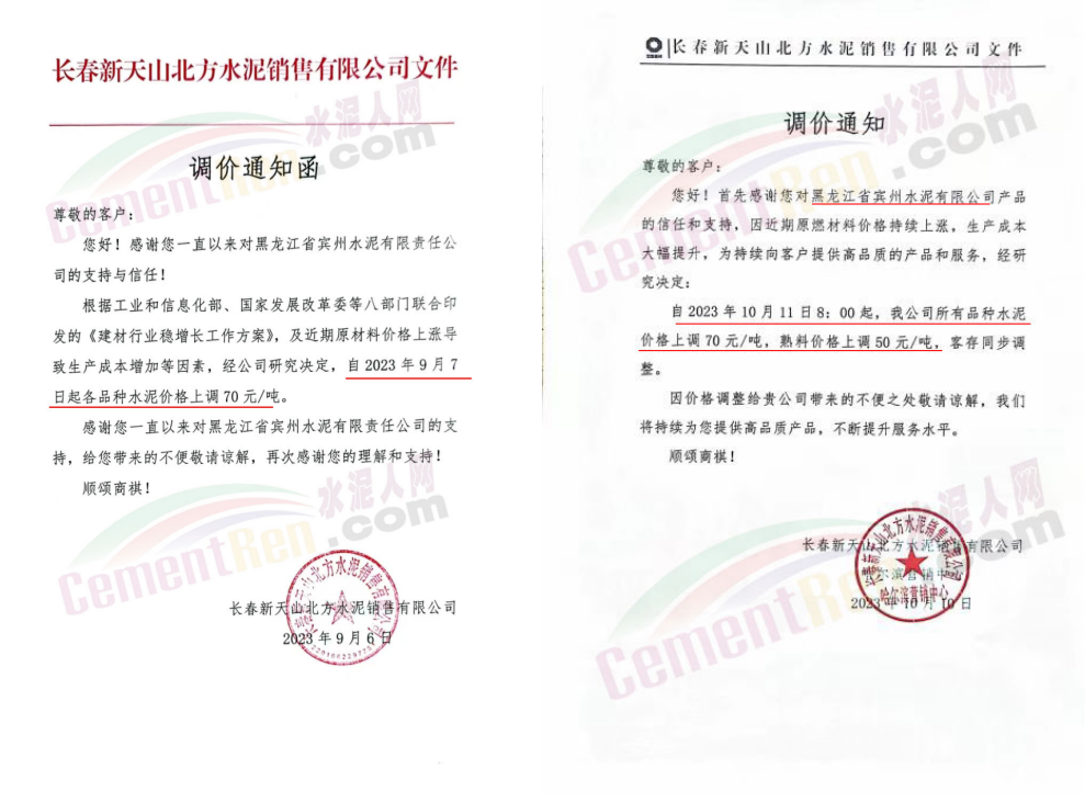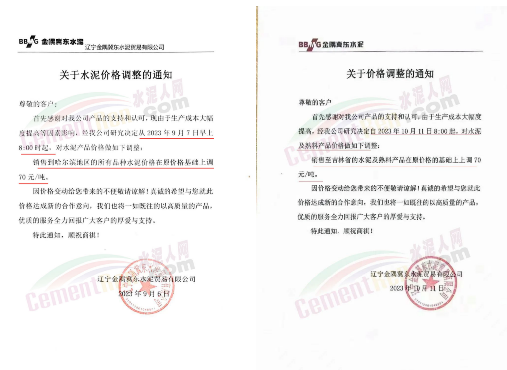 东北辽吉黑地区,9月份冀东、北方、亚泰、山水、天瑞水泥等多家主要品牌企业陆续通知上调水泥及熟料报价50-70元/吨。至今仅部分企业落实上调30元/吨。10月中旬再次通知上调50-70元/吨,两次累计上调100-140元/吨。