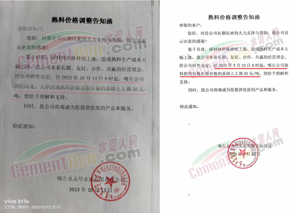 辽宁区域山水水泥子公司喀左丛元号水泥有限公司,继9月份连涨三次后,再次通知10月14日起,上调销往河北、天津区域熟料报价20元/吨,四次累计上调达100元/吨。