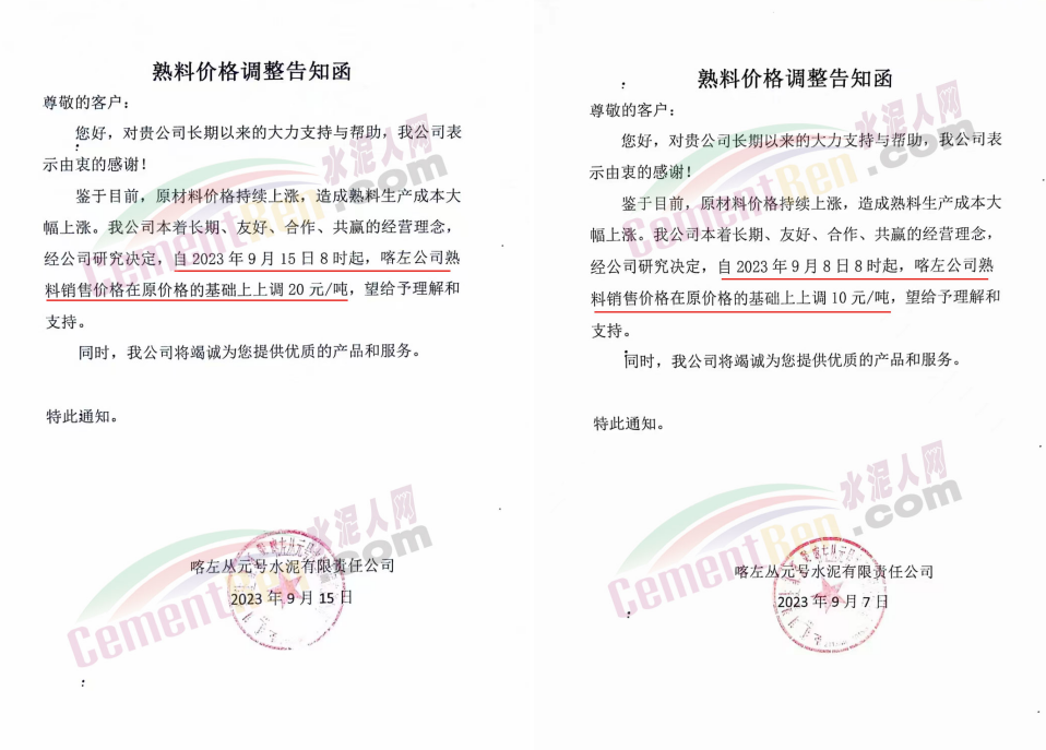 据了解该企业曾于9月21上调水泥熟料报价30~40元/吨,两次累计上调80-90元/吨。另据当地企业反馈,按计划月内还将进行1~2次上调。