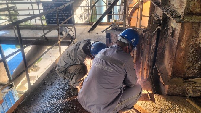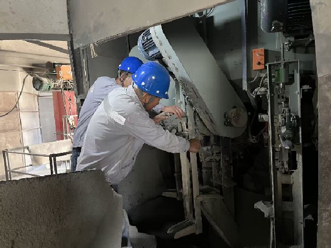 包装工段员工围绕“保出厂、提效率”目标,利用装车间隙主动开展包装机维保,停机期间完成下料口积料清理、输送带与托辊检查更换、包装秤传感器校准等工作,保障生产流程顺畅。