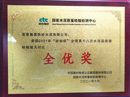 亚泰集团铁岭水泥有限公司荣获“2021”年“砼灿杯”全国第十八次水泥品质指标检验大对比全优奖