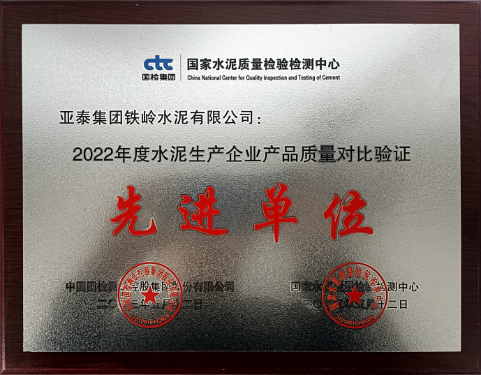 荣获2022年度水泥生产企业产品质量对比验证先进单位