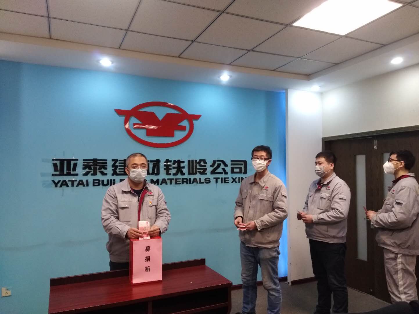 2020年2月28日上午,亚泰集团铁岭公司下发“为抗击疫情捐款倡议书”,号召全体党员干部职工积极响应,踊跃捐款。公司领导班子成员带头捐款,其余干部职工紧随其后,此时,不管是领导还是员工,不管是党员还是群众,纷纷慷慨解囊,向奋战在抗疫前线的同胞们伸出援手。