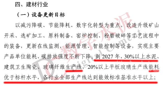 指南明确了水泥行业设备更新目标,要求到2027年,30%以上水泥生产线能耗优于标杆水平,全部水泥生产线达到能效标准基准水平以上;70%以上水泥、企业实现生产全流程高度自动化,数字化转型成熟度3级及以上的企业比例达到20%以上,行业绿色化和数字化水平显著提升。涉及水泥生产窑炉和产能变化的,需先按规定落实产能置换相关政策。