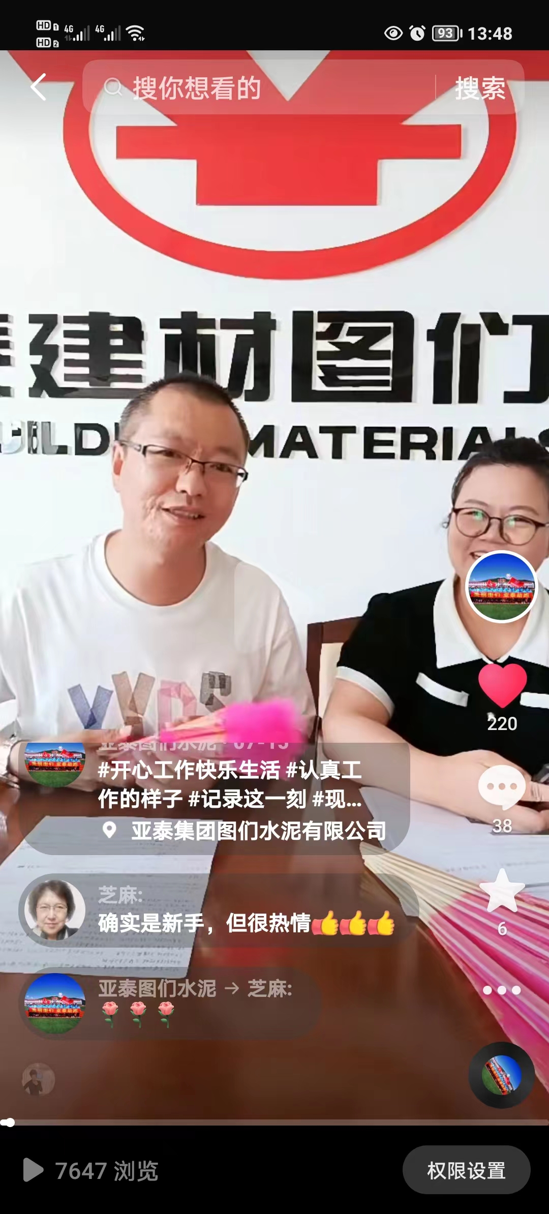 亚泰建材图们公司全方位塑造全员营销氛围,通过抖音直播线上宣传企业模式,充分提升全员营销、双线营销意识,调动员工营销氛围。