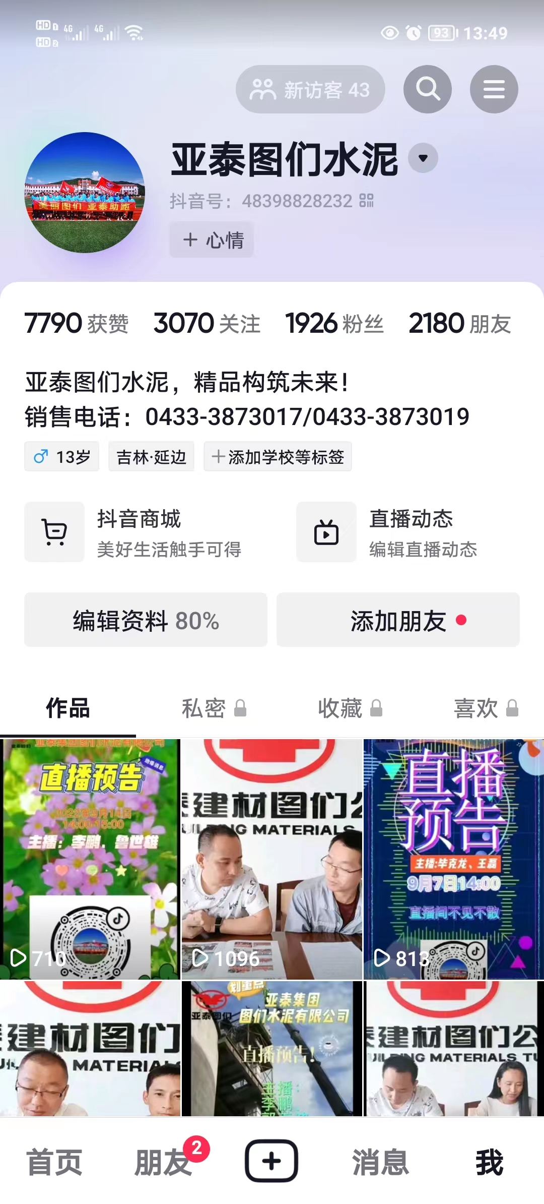 亚泰建材图们公司全方位塑造全员营销氛围,通过抖音直播线上宣传企业模式,充分提升全员营销、双线营销意识,调动员工营销氛围。
