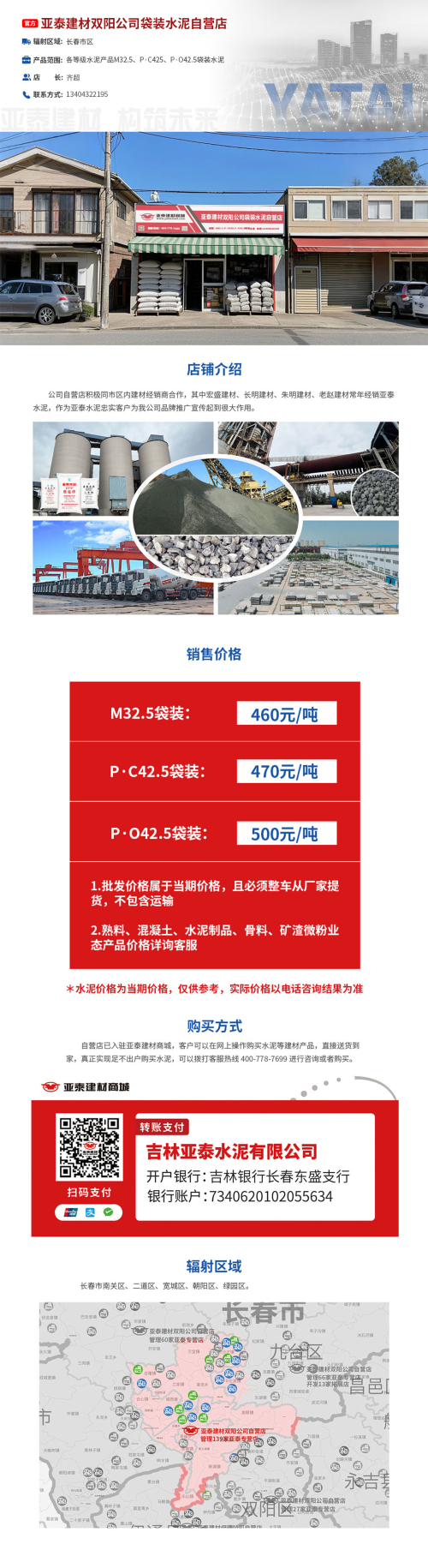 亚泰建材商城-亚泰建材双阳公司袋装水泥自营店上线啦