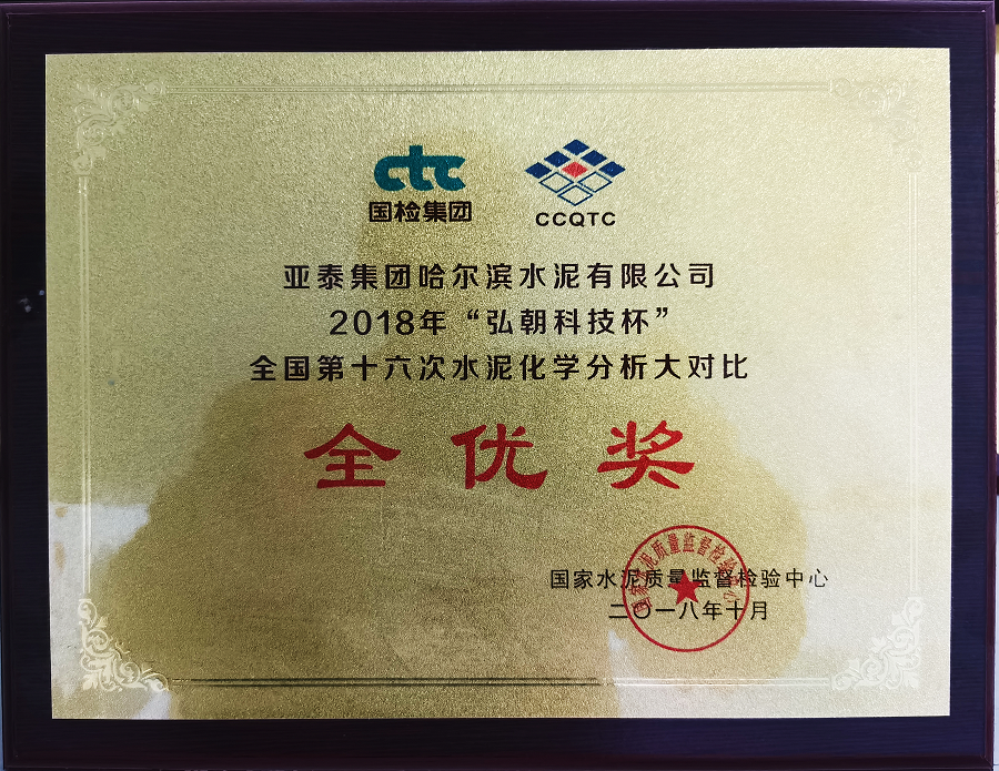 回顾近十年,公司共参加由国家水泥质量监督检验中心主办的全国水泥品质指标检验大对比和全国化学分析大对比活动8次,获得大对比全优奖5次,优良奖3次。