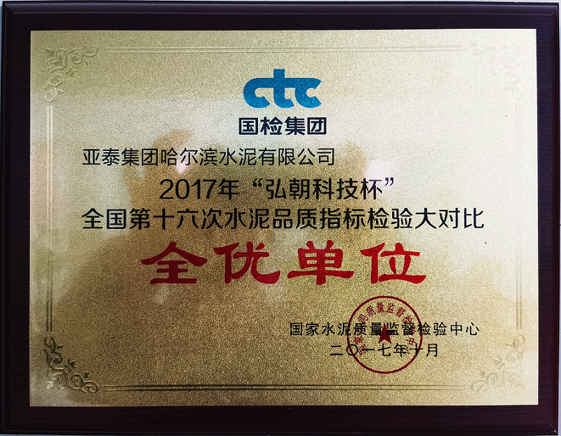 全国水泥品质指标检验大对比和全国水泥化学分析大对比是国家水泥质检中心在全国水泥行业举办的最权威的检测能力对标活动,也是国内水泥行业的技术大比武,水泥品质指标检验大对比,涵盖15个检测项目,其中物理检测11项,化学检测4项:水泥化学分析大对比涵盖24个化学检测项目。公司每次大对比所报出的检测结果,不仅全部在合格范围内,平均误差远远低于全国行业平均水平,而且数项实测值与标准值0偏差,才能获得“优良奖”、“全优奖”。
