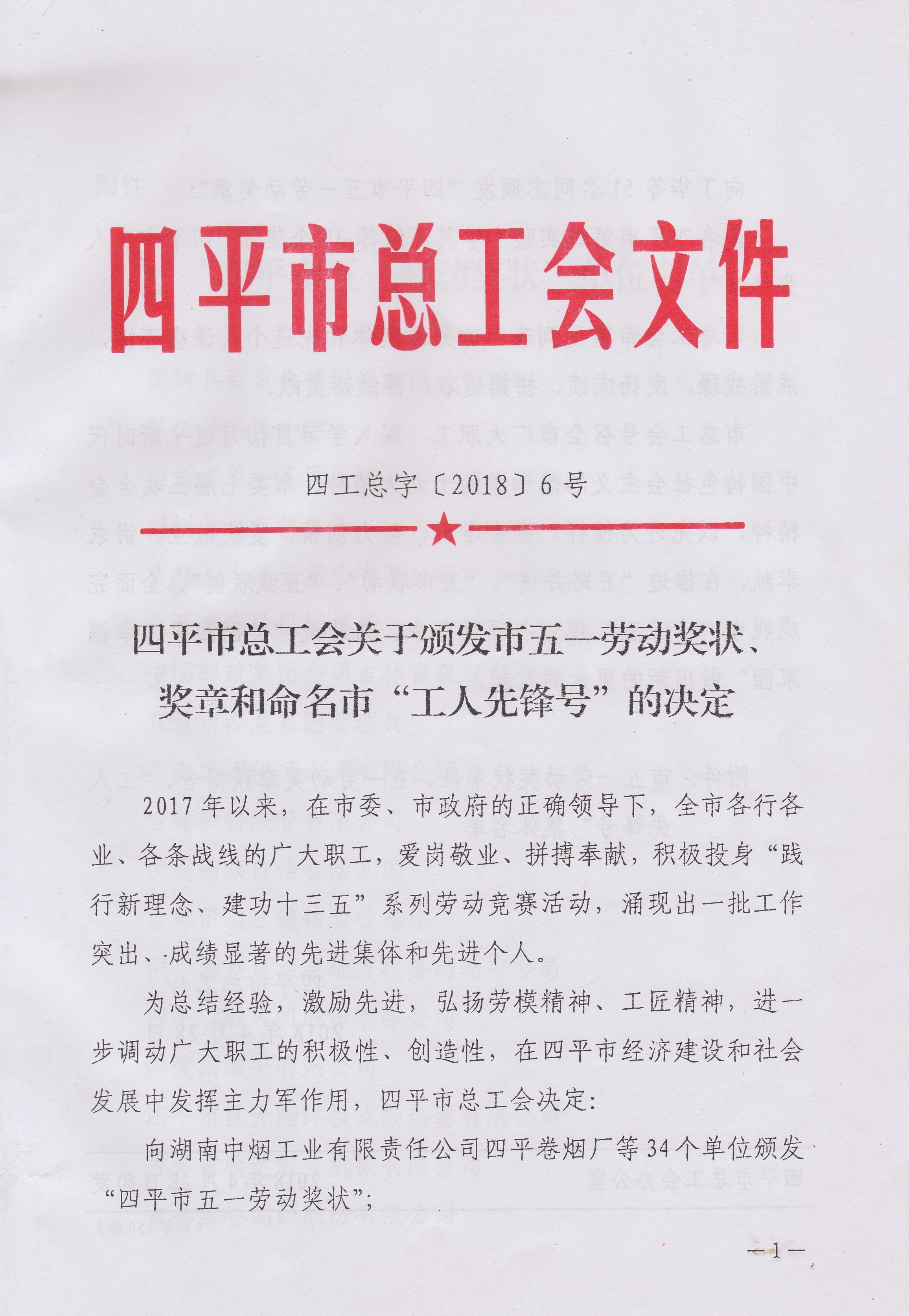 “践行新理念,建工十三五”系列劳动竞赛活动中涌现出一批工作突出、成绩显著的先进集体进行了表彰, 亚泰集团伊通水泥有限公司荣获“四平市五一劳动奖状”单位荣誉称号。