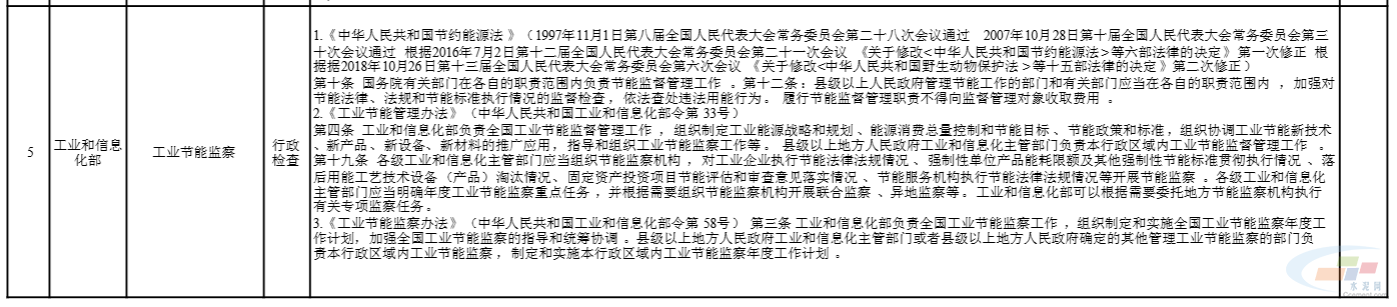 近日,工业和信息化部办公厅关于印发部行政执法事项清单(2025年版)的通知,其中第5项工业节能监察与水泥行业关系较大。