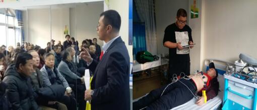 工作人员介绍心康中心康复项目、现场示范心电图诊断2分钟回传
