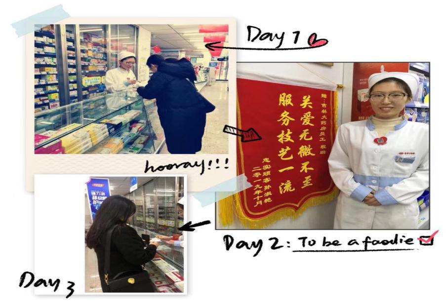 上图为朝阳一区富锦路二店健康管理师程璐服务顾客及收到锦旗的照片
