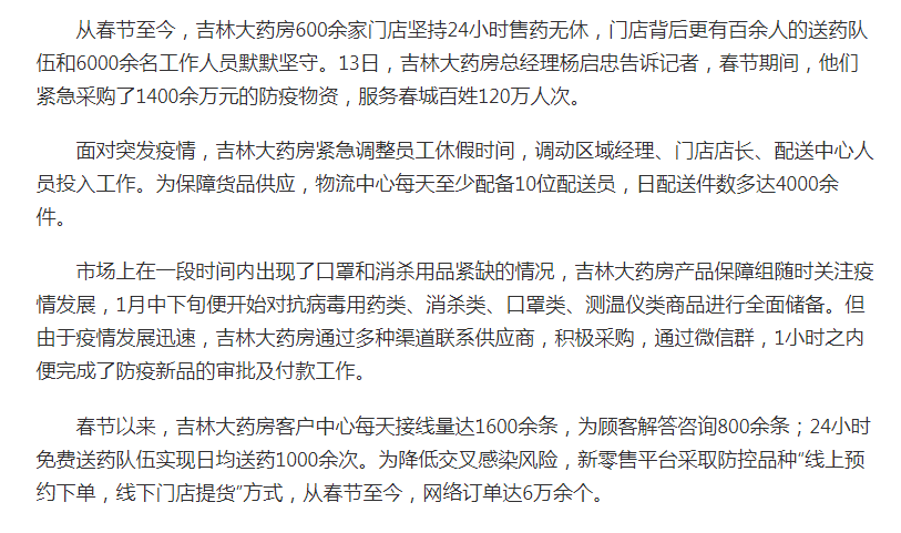24小时无休、6000余人坚守、网络订单6万余个--吉林大药房多渠道满足市民需求