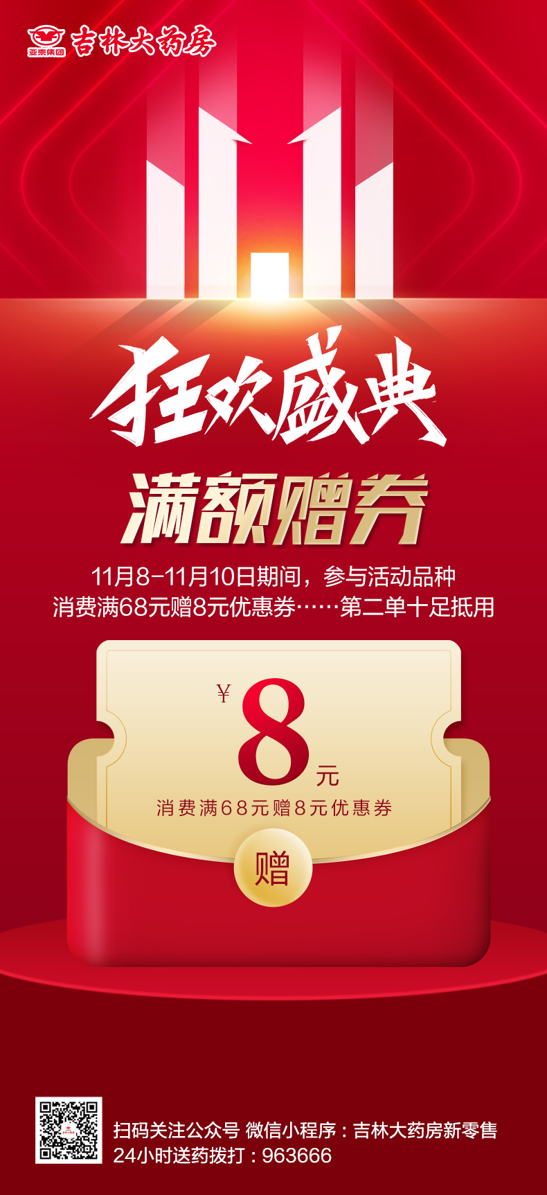 吉林大药房迎双11——线上狂欢盛典,满额赠券!