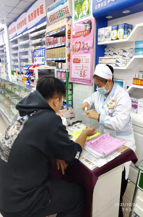 宽城区上台花园店申凤美从事专职慢病管理师已有两年,近日有位阿姨由于头晕来到药店买药,申凤美建议阿姨测量一下血压,可阿姨嫌麻烦不肯测,申凤美坚持说:“根据阿姨您的描述和自身状况,您的头晕很可能是由于血压高造成的,如果长时间得不到有效控制,会引发心脑血管疾病”,最后阿姨认识到血压高的危害,听从申凤美的劝导,测了血压,结果发现血压偏高,随即到医院检查才发现是二级高血压。申凤美告诉我们:“现在越来越能理解这份工作的重要意义,这份工作真正能帮助到身边顾客。我用对待家中长辈的心态去关心顾客,成为他们生活中的健康管家。”像申凤美一样的药店人有很多,日复一日的努力为顾客提供更专业、贴心的优质服务。