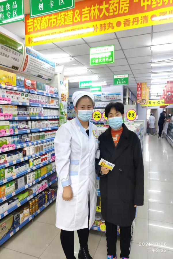 吉林大药房2017年成立专业“健康管家”团队--专职慢病管理师,她们为慢病患者提供全方位、多角度的健康服务,同时对各种危险因素进行积极的干预,传播医药卫生知识,为慢病患者或家属提供合理的健康科普、用药指导以及人文关怀。