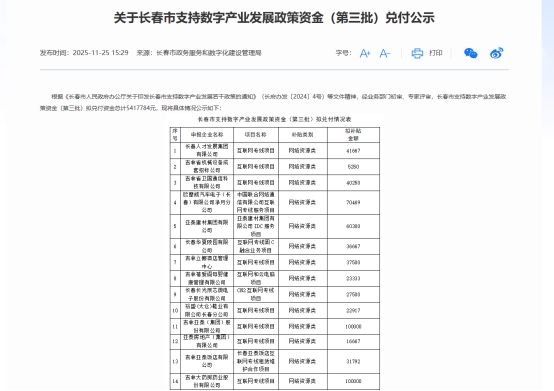 近日,长春市政务服务和数字化建设管理局公示了长春市支持数字产业发展政策资金(第三批)兑付情况,吉林大药房药业股份有限公司成功入选,获得10万元政策资金兑付。