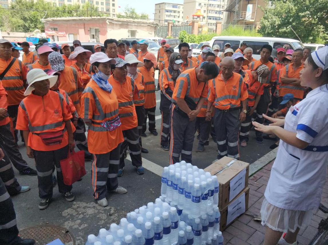 烈日下,日均工作超过8小时的高温劳动者,主要集中在环卫等行业。为此,吉公益爱心蓝马甲志愿者团队绿园区分队、南关一区分队、二道区分队分别向区域环卫工作者赠送藿香正气口服液和矿泉水,讲解中暑表现和预防知识,共同对抗中暑保护健康。