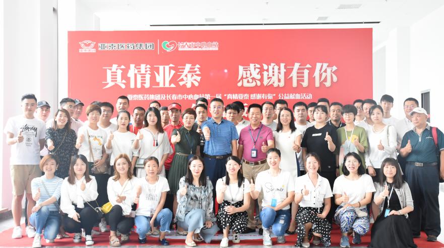 2019年8月13日上午9:30,亚泰医药集团联合长春中心血站在亚泰国际医药产业园创新中心开展“真情亚泰·感谢有你”无偿献血公益活动。