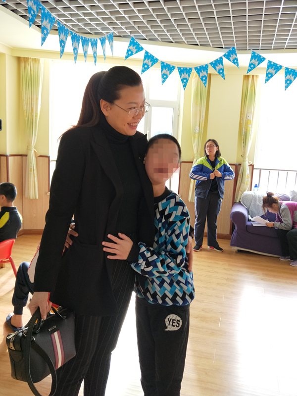 上图:吉林大药房总经理助理王玉萍与孩子们