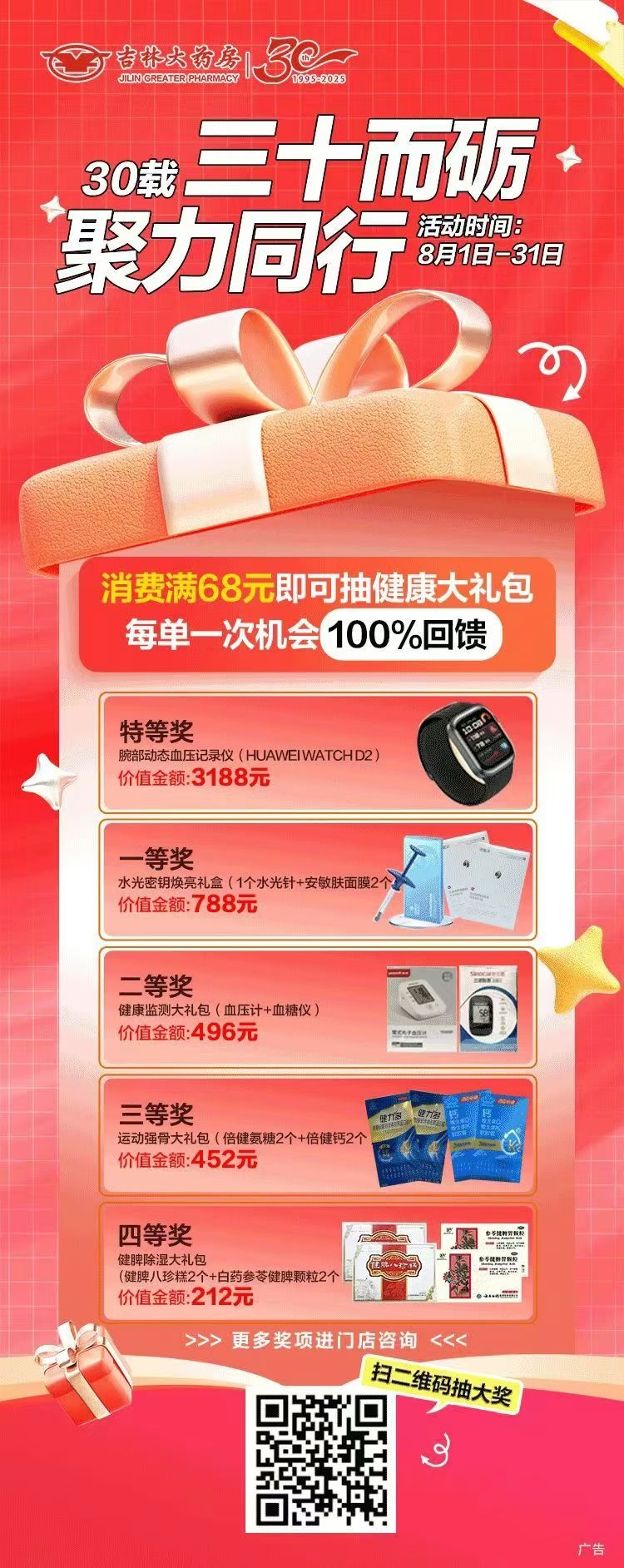 “三十而砺 聚力同行”吉林大药房三十周年庆健康豪礼送不停!