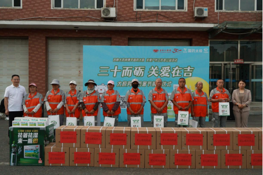 作为守护城市环境的核心力量,环卫工人长期直面日晒、燥热等户外作业挑战,其健康保障始终是二道区城市管理行政执法局关注的重点。此次活动中,二道区城市管理行政执法局积极联动企业资源,与深耕医药领域 30 年、公益基因深厚的亚泰集团吉林大药房,及国药太极集团紧密协作,依托亚泰集团吉林大药房 100 家 “雷锋示范店” 与蓝马甲志愿者团队的公益基础,以简约务实的形式开展帮扶,三方共同向二道区环卫工人捐赠价值 8 万元、共计 25000 余支的太极藿香正气口服溶液,精准匹配高温作业场景下的健康需求,为环卫工人身体健康筑牢 “防护网”。