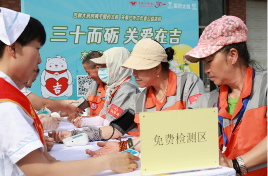 吉林大药房蓝马甲志愿者团队为户外劳动者贴心检测