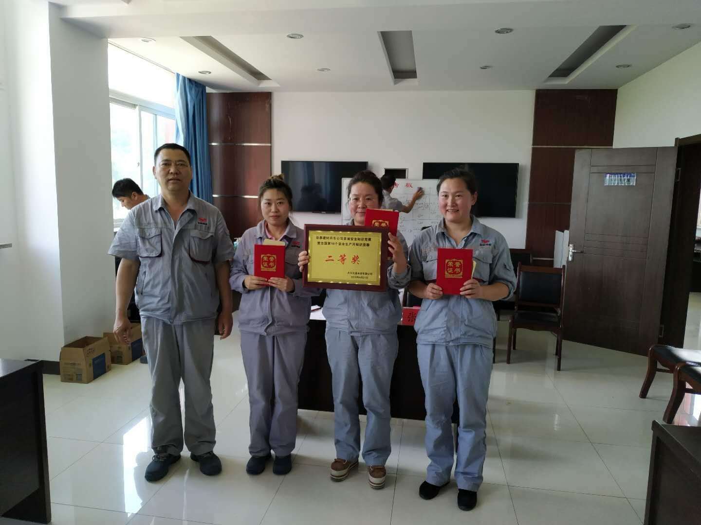 丹东公司在安全月活动期间于6月21日举行了全国第18个安全月安全知识竞赛曁丹东公司首届安全知识竞赛活动,公司领导张立生、张欢亲自参加了本次竞赛活动,并由张欢致词!活动共由生产、化验、机关、机修、电气五个代表队组成,经过必答、抢答、风险、互动等几个环节的激烈竟决,最终生产代表队取得第一名、化验代表队取得第二名!公司领导张欢为获奖代表队颁发了礼金和奖品!