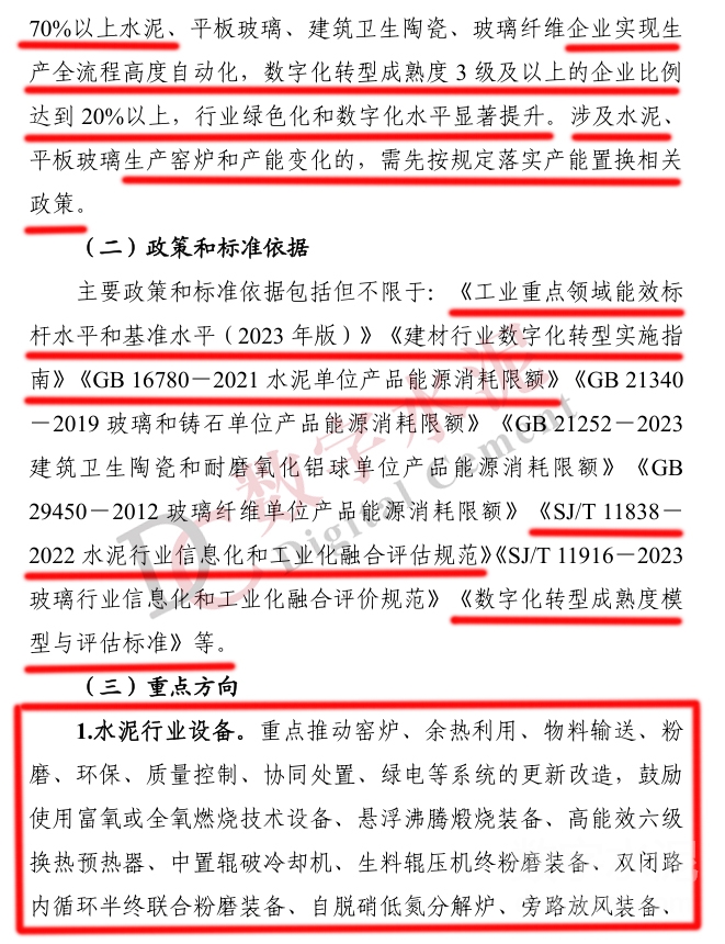 指南提到建材行业主要政策和标准依据,与水泥行业相关的有:包括但不限于:《工业重点领域能效标杆水平和基准水平(2023年版)》《建材行业数字化转型实施指南》《GB16780-2021水泥单位产品能源消耗限额》《数字化转型成熟度模型与评估标准》等。