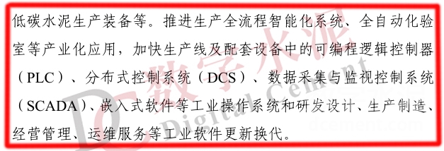 指南重点方向方面,针对水泥行业提出,重点推动窑炉、余热利用、物料输送、粉磨、环保、质量控制、协同处置、绿电等系统的更新改造,鼓励使用富氧或全氧燃烧技术设备、悬浮沸腾煅烧装备、高能效六级换热预热器、中置辊破冷却机、生料辊压机终粉磨装备、双闭路内循环半终联合粉磨装备、自脱硝低氮分解炉、旁路放风装备、低碳水泥生产装备等。推进生产全流程智能化系统、全自动化验室等产业化应用,加快生产线及配套设备中的可编程逻辑控制器(PLC)、分布式控制系统(DCS)、数据采集与监视控制系统(SCADA)、嵌入式软件等工业操作系统和研发设计、生产制造、经营管理、运维服务等工业软件更新换代。