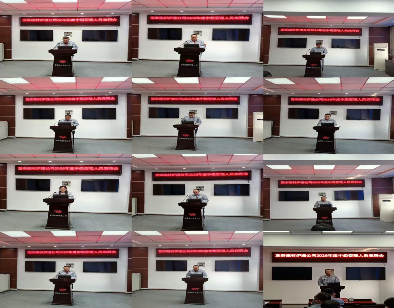 为深入贯彻落实公司《人力资源管理制度》和年度工作安排,大力弘扬“有为有位”的职业精神,积极营造“能者上、干者上、智者上”的选人用人环境,着力打造一支精干高效、敢打硬仗、能打胜仗的管理团队,为全面完成2026年度各项生产经营指标奠定坚实人才基础,亚泰建材伊通公司于2026年1月16日成功举办了中级管理人员竞聘会。本次竞聘会由公司副总经理孔祥勇主持,公司高管及骨干人员共25人参会。
