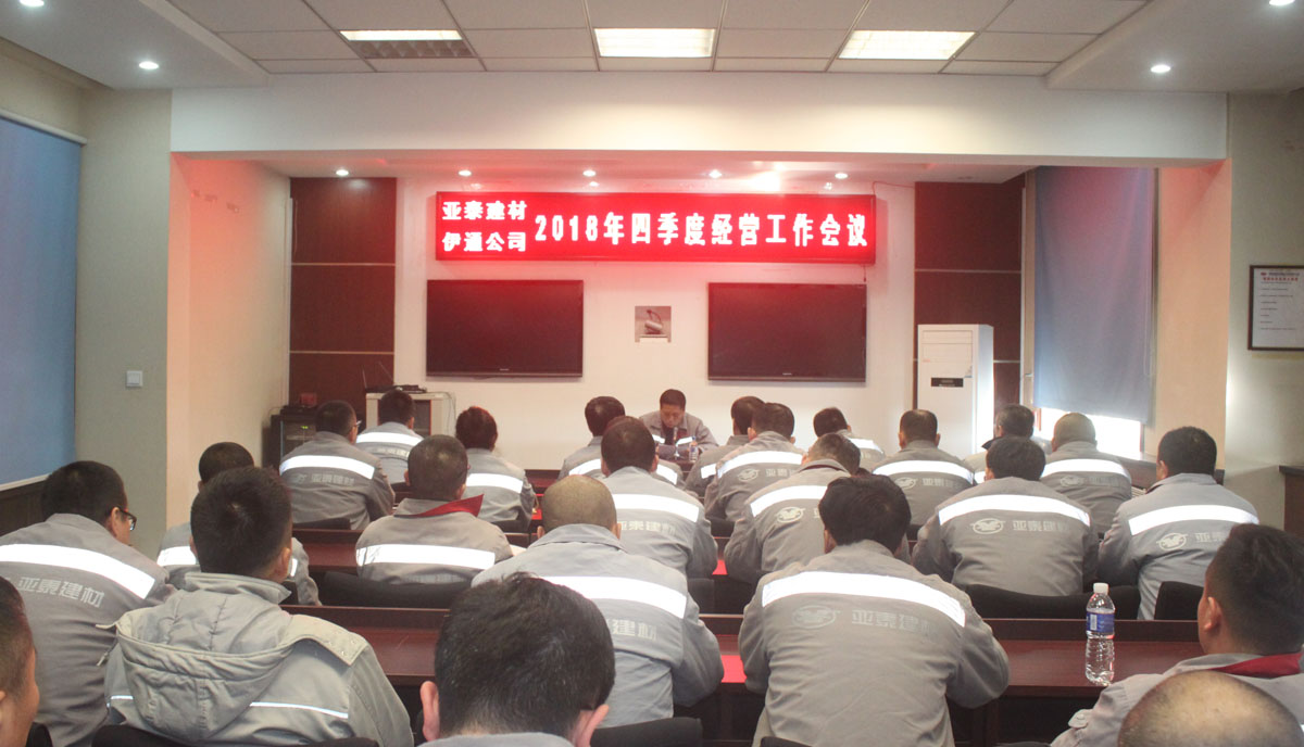 2019年1月2日上午,亚泰建材伊通公司四季度经营工作会议在公司三楼视频会议室召开。会议由公司副总经理董立国主持,工作经营班子、中级管理人员、生产骨干共30人参加了会议。会议主要是回顾和总结2018年四季度经营工作,根据新的形势、市场变化,安排部署2019年一季度年经营工作。同时,动员广大员工振奋精神、鼓足干劲,全面完成2019年一季度各项经营指标。
